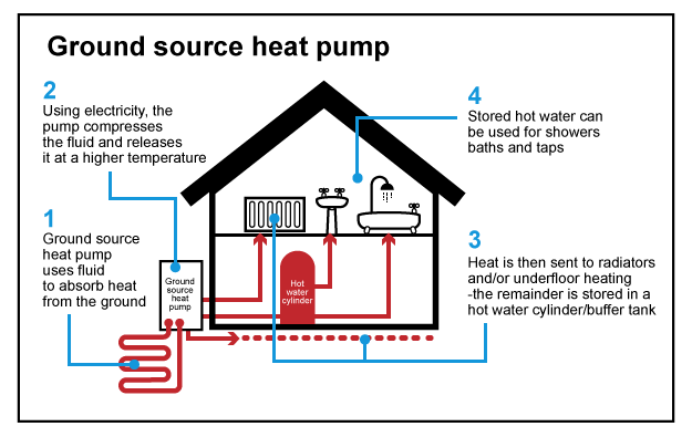 A GSHP is an energy efficient, renewable energy solution that is particularly suited to properties on larger plots. They are units which are installed inside a property or in an external plant room and they circulate heat from the ground and raise its temperature before distributing the heat to provide hot water and space heating via radiators, underfloor heating or fan coil units. They are powered by electricity and are a clean and combustion free technology which doesn't use fossil fuels helping to reduce your carbon footprint and even lower your energy bills.